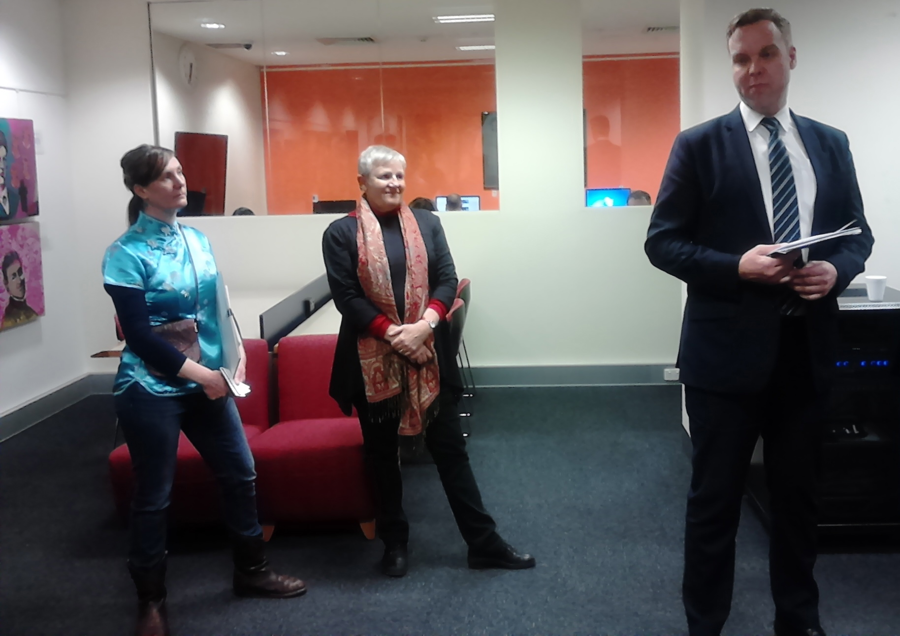 Leichhardt Opening Event 2015 – Mr Jamie Parker, Greens Member for Balmain and former Mayor of Leichhardt with Margot Jolly, President of the Kalari-Lachlan River Arts Festival, artist Rebecca Wilson and Curator at Leichhardt Library Amie Zar. Thank you to each of them for their support. You can see more at facebook.com/rwilsonart.