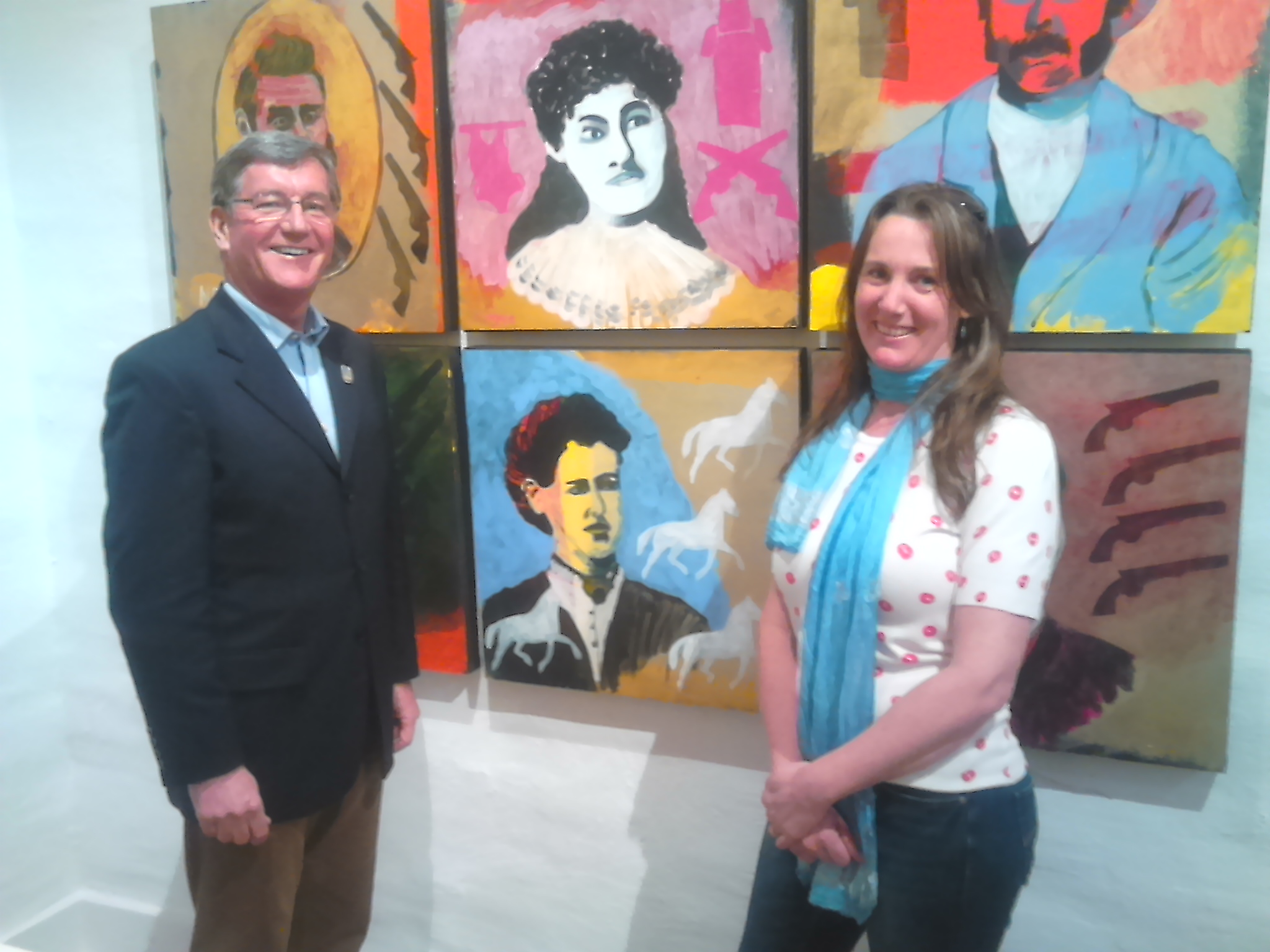 Hill End Opening Event 2015 – Mayor of Bathurst Mr Gary Rush, Curator of Bathurst Regional Gallery Sarah Gurich and artist Rebecca Wilson. The artist and the Mayor pictured with one of the works purchased for Bathurst Regional Gallery. Thanks to BRAG, Sarah and Gary for their support. You can see more at facebook.com/rwilsonart