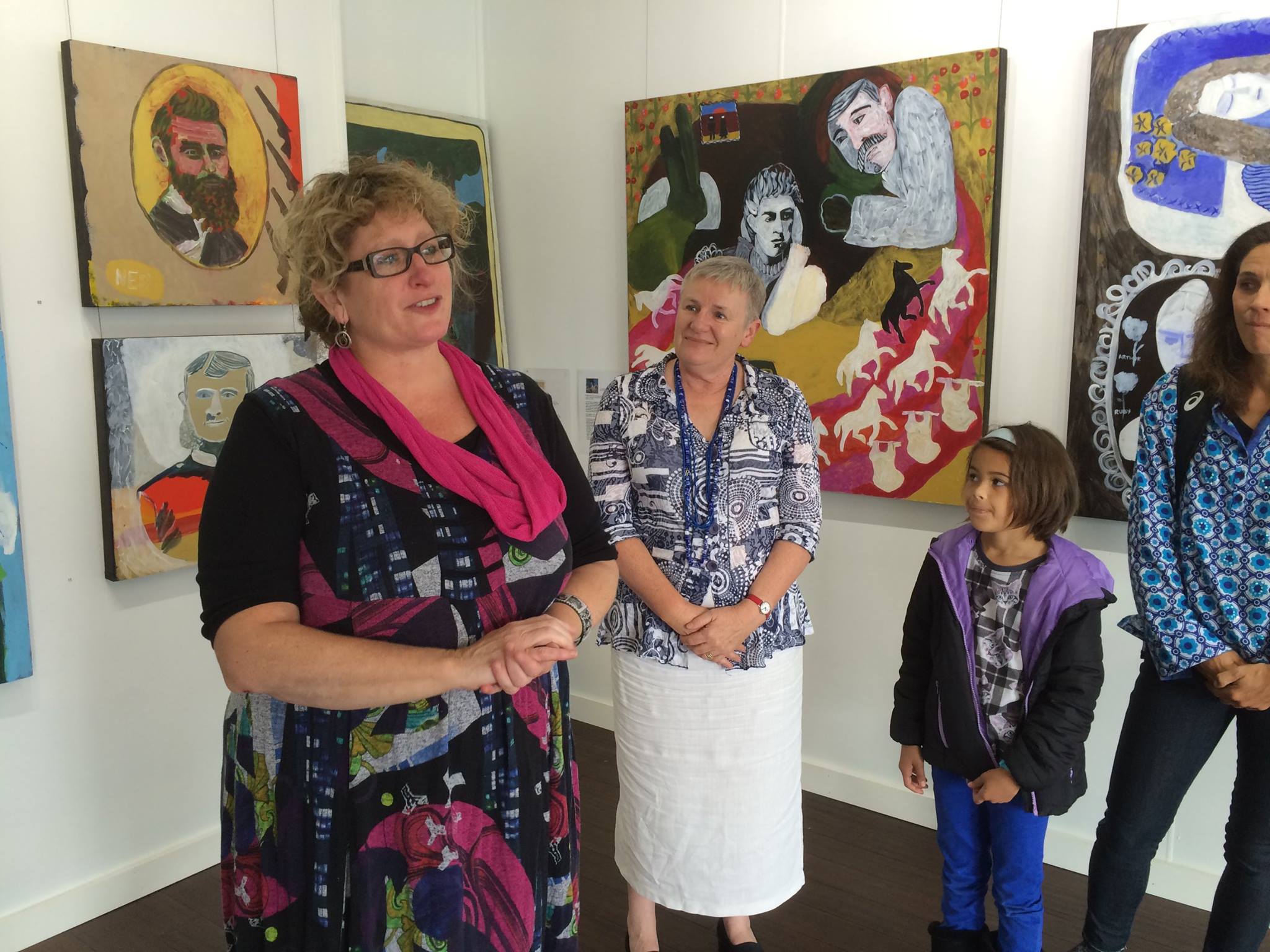 Blackheath Launch Event – Tracey Callinan Arts OutWest EO, Margot Jolly River Arts Festival President, Liz Bastian Arts Specialist and artist Rebecca Wilson. Tracey and Margot pictured giving speeches to launch the Kate Kelly: Sister of an Outlaw Travelling Exhibition. Thanks to Kalari-Lachlan River Arts Festival and Arts OutWest for all their support and assistance.