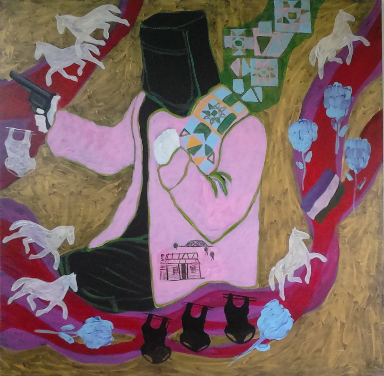 As part of a long-term project, Wilson has researched the life and times of Kate Kelly for many years. She has fond memories of her late uncle telling her stories of how lovely Kate was, in tales that had been passed down to him by relatives. The local lore holds that Kate was an extraordinary woman who found herself in extraordinary circumstances. In her ongoing series of paintings, Rebecca Wilson has felt compelled to provide a personal vision of Kate’s life and how it intertwines with her own family history.