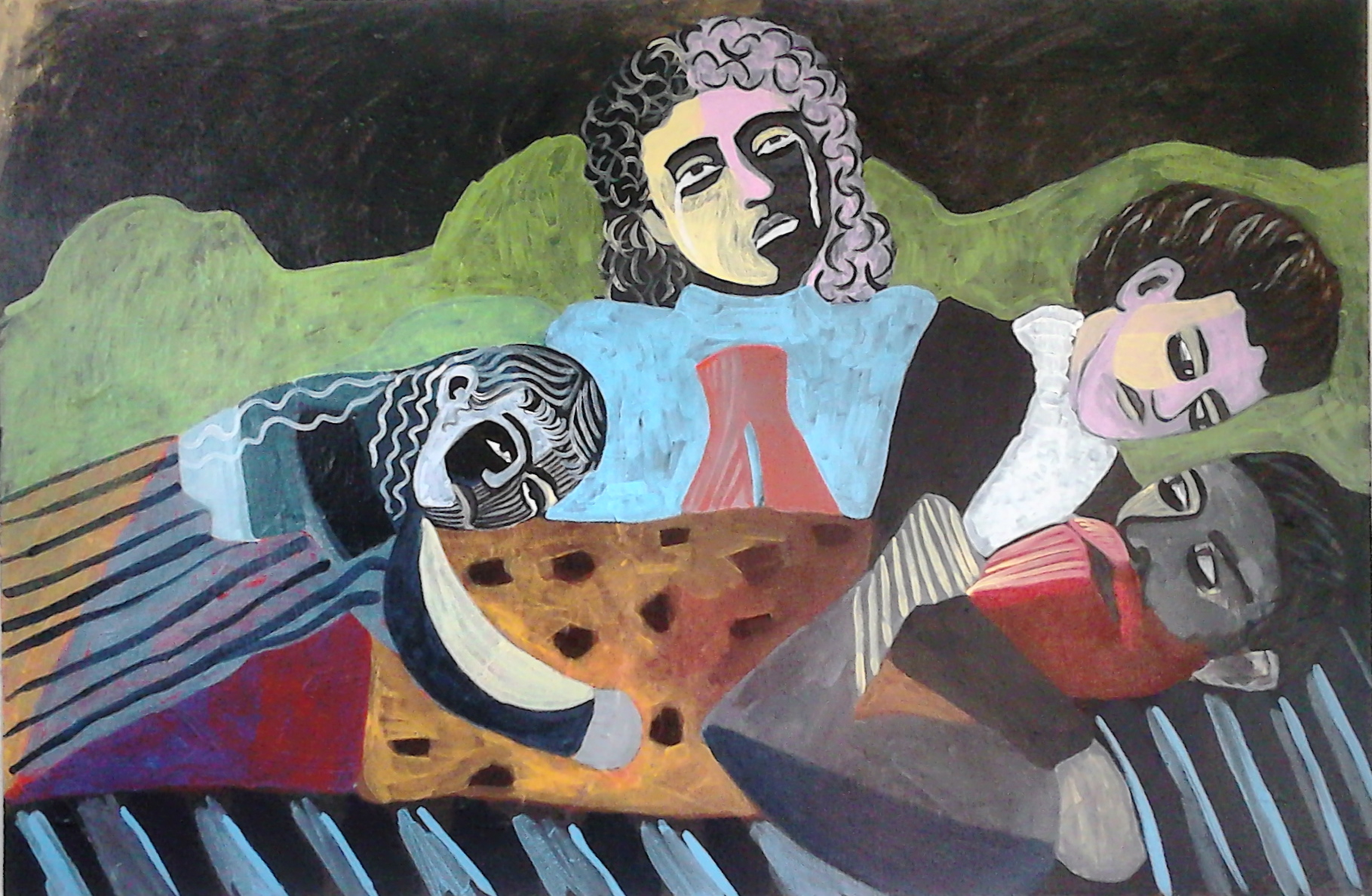 Sisters in Arms 2013, 80 x 120 cm Kate, Maggie & Grace Kelly surround their injured brother in Glenrowan, after he had been shot. In a letter donated to Melbourne Library in 2012, an eye- witness describes the Kelly sisters wailing in the street and Kate with her arm around Ned’s neck.